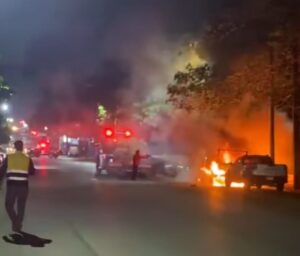 Sujetos a bordo de motocicleta lanzaron esta noche bombas Molotov hacia una camioneta estacionada frente al Colegio de Policía y Tránsito de la Secretaría de