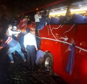 Un autobús de la línea Autobuses de Oriente (ADO) sufrió un accidente en el kilómetro 105, en el Tramo Nuevo progreso y Nuevo Campechito. En
