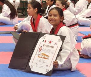 Elisa Shekhinah Vinagre Custodio presentó y aprobó exitosamente su Examen de Cintas Negras. Ante la mirada de sinodales y padres de familia, la taekwondoína demostró