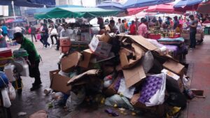 Locatarios del mercado, vecinos y transeúntes denunciaron que los alrededores del centro de abastos, José María Pino Suárez, en Villahermosa, se encuentran prácticamente “s3cu3str4d0” por