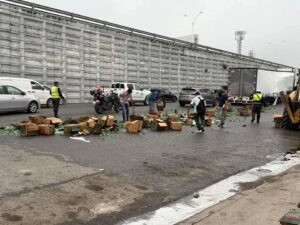 La mañana de este jueves 29 de mayo, un tráiler que transportaba cerveza sufre percance al dar vuelta en “U” a la altura del periférico