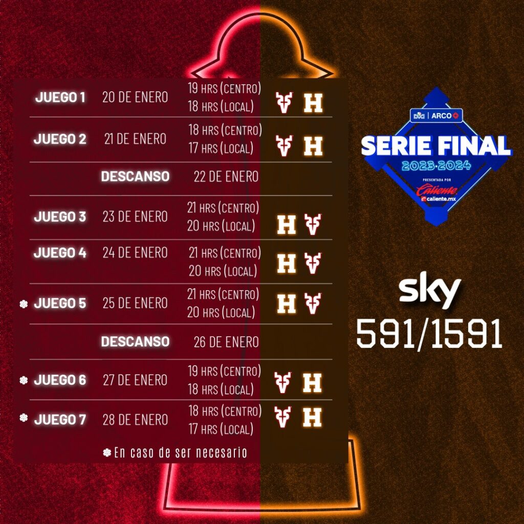 La Liga ARCO Mexicana del Pacífico informa, que basado en el acuerdo existente en la asamblea de presidentes y dada la situación de la definición en cuatro y cinco juegos respectivamente de las series semifinales, ya con el enfrentamiento de la Serie Final definido entre Venados de Mazatlán y Naranjeros de Hermosillo, la serie que definirá el título de la Temporada 2023-2024 presentada por Caliente.mx, se adelantará, arrancando el próximo sábado 20 de enero, en punto de las 18:00 horas Pacífico/ local, 19:00 horas centro en el Estadio Fernando Valenzuela de la capital sonorense.
