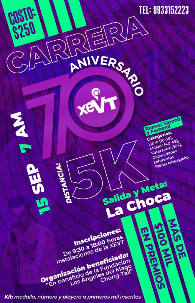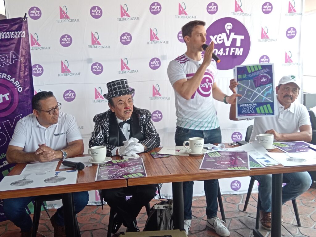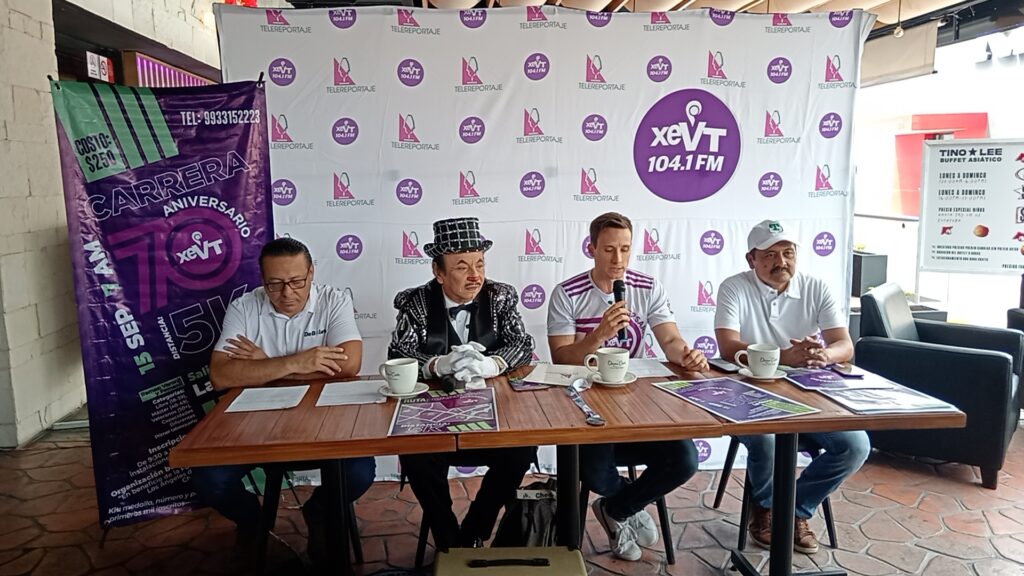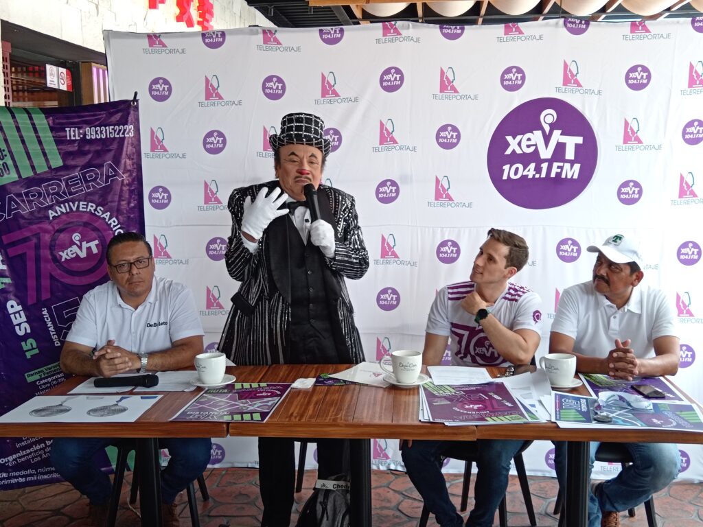 Este jueves se llevó a cabo la presentación de la carrera del 70 aniversario de la estación radiofónica xevt la cual será efectuará 15 de septiembre en Villahermosa y en la que se esperan mil participantes.