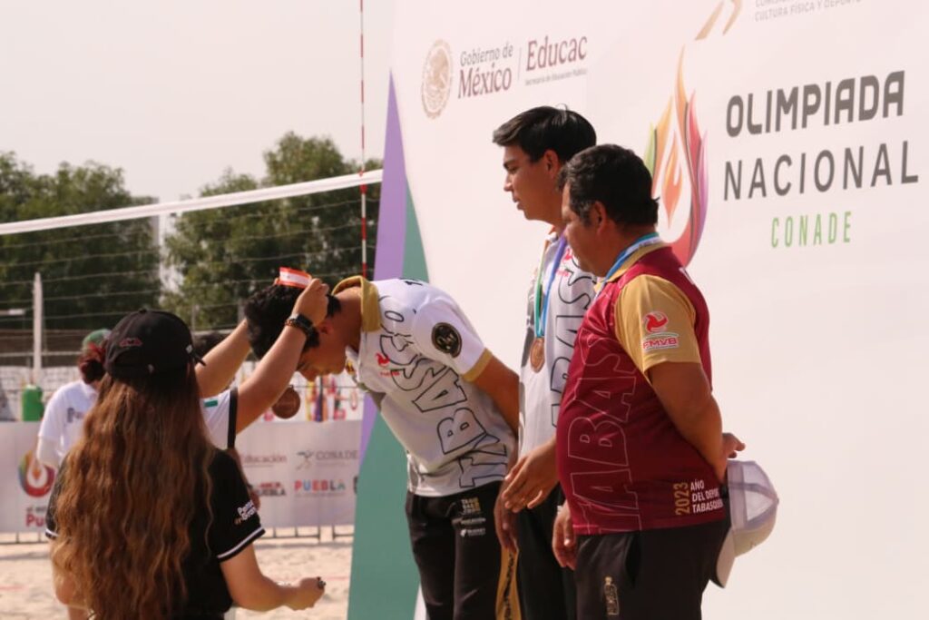 En una jornada llena de adrenalina, Luis Ángel Pérez Castellanos y Cristopher Fuentes Avalos se subieron al podio de la Olimpiada Nacional 2026, colocandose en la 3era posición de la categoría Juvenil Mayor de Voleibol de Playa y otorgando a Tabasco su primera presea en la máxima justa deportiva nacional.