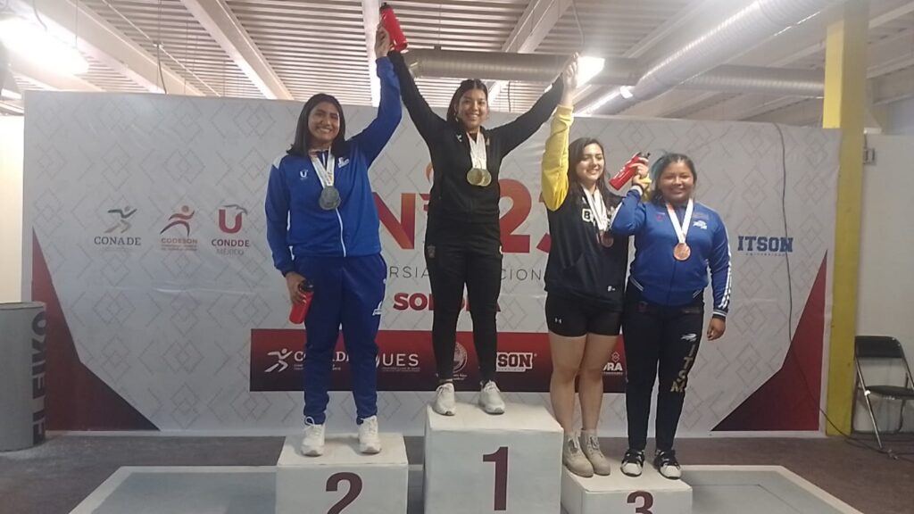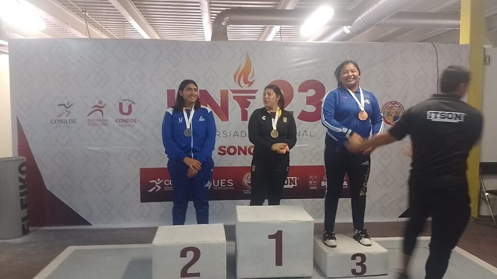 La selecionada tabasqueña de Levantamiento de Pesas Pilar del Carmen Díaz García obtuvo medalla de bronce en los juegos universitarios del CONDDE (Consejo Nacional del Deporte de la Educación) que se celebran en Hermosillo Sonora.