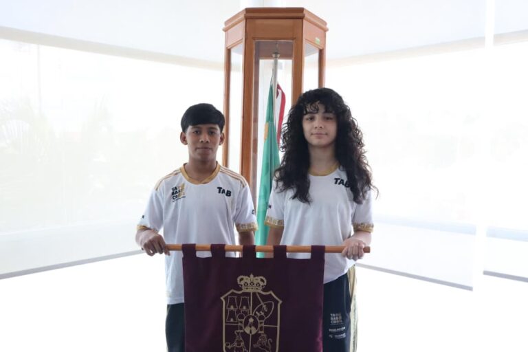 Con orgullo y compromiso de representar a Tabasco, y México, los gladiadores Valentina Padrón Talavera y Jorge Eduardo Cruz Cruz fueron abanderados esta tarde por nuestro Director, Gabriel Isaac Ruiz Pérez, rumbo a su participación en el Panamericano de Luchas Asociadas U17 que se celebrará del 2 al 6 de abril en Panamá.