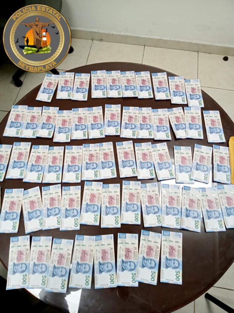 Medios de comunicación de Campeche de tallaron que al momento de la inspección, los ahora detenidos J.S.G.T., J.G.H.Q, J.D.H.Q. y L.A.O.V. intentaron sobornar a los agentes institucionales al ofrecerles dinero para que los dejaran ir. En la revisión del vehículo se hallaron carpetas y sobres con casi medio millón de pesos presuntamente falsos.