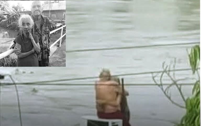 En la imagen, se observan ambos Abrazados logrando salir con vida tras la fuertes inundaciones de Poza Rica pero el destino para ellos sería otro, don Layo se quedó solo pues su esposa ha muerto .