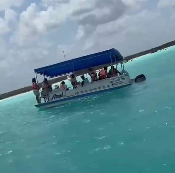 Un catamarán fue captado este domingo cuando se hundía en la Laguna de los 7 Colores, en Bacalar Quintana Roo al parecer por sobrecupo.
