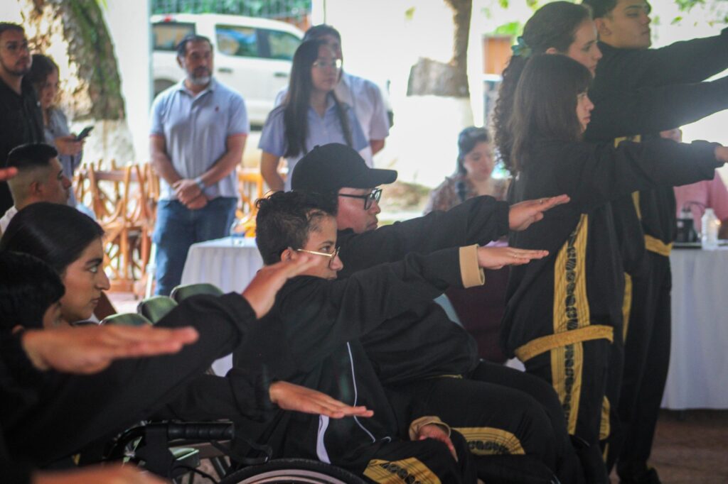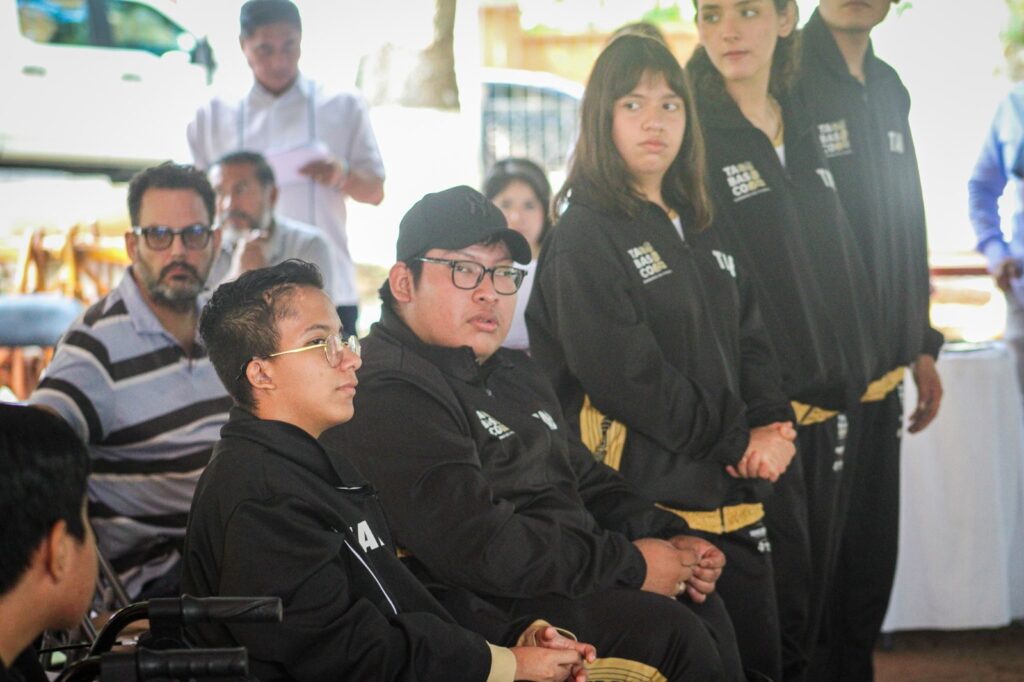 En representación de la delegación, el paratleta André Alexander Zapata Aguilar ofreció palabras de agradecimiento y dirigió la toma de protesta a sus compañeros, quienes levantaron la mano con orgullo y compromiso.