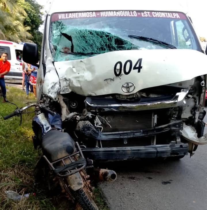Un trágico accidente ocurrió esta tarde sobre la carretera federal Villa Chontalpa–Huimanguillo en la que un motociclista muere atropellado por una combi.