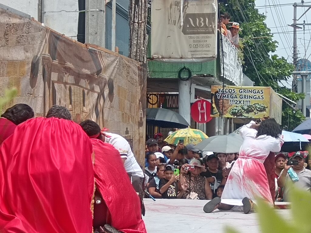 Este Viernes Santo, miles de fieles de la comunidad católica se reunieron en la colonia Tamulté de Villahermosa para participar en la 57ª edición del tradicional viacrucis. Desde las 10:00 de la mañana hasta las 15:00 horas, los asistentes fueron testigos de la conmovedora representación bíblica.