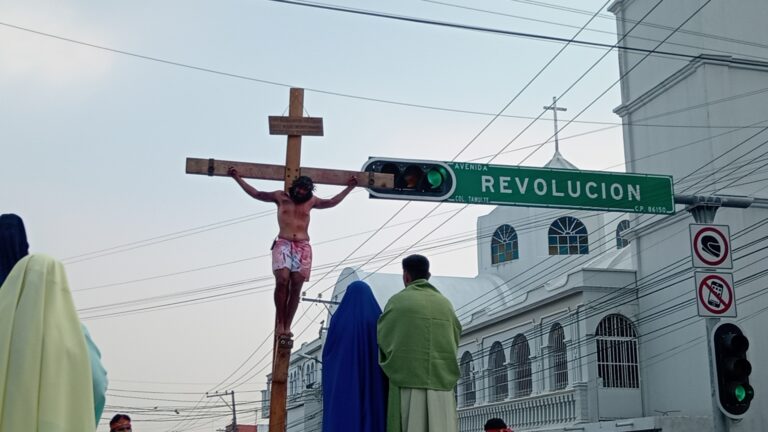 Este Viernes Santo, miles de fieles de la comunidad católica se reunieron en la colonia Tamulté de Villahermosa para participar en la 57ª edición del tradicional viacrucis. Desde las 10:00 de la mañana hasta las 15:00 horas, los asistentes fueron testigos de la conmovedora representación bíblica.