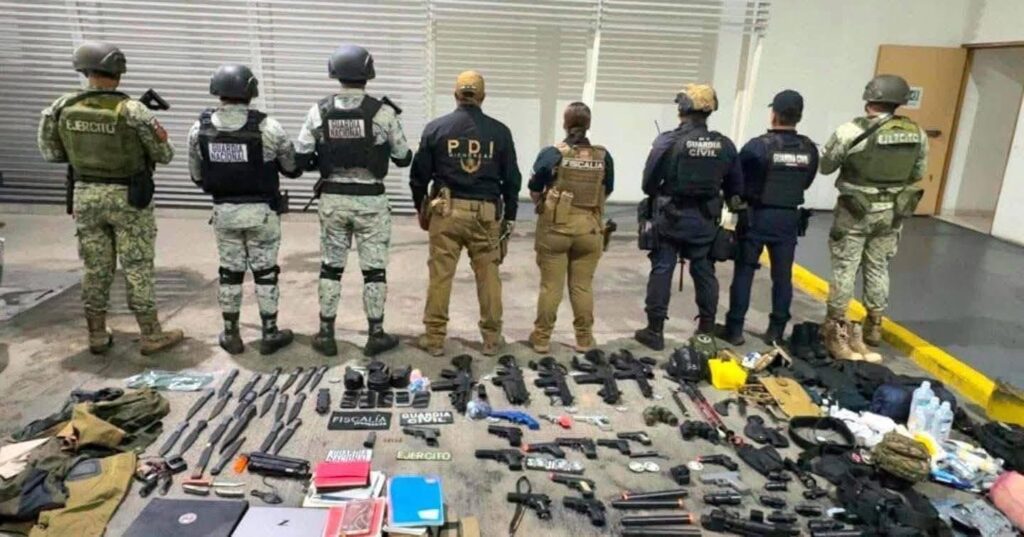 El hallazgo se dio en las inmediaciones de unos invernaderos, donde los uniformados descubrieron a los sujetos realizando prácticas tácticas con réplicas de armas largas, pistolas, cuchillos tipo militar, equipo de cómputo e incluso una caja diseñada para simular bombas caseras.