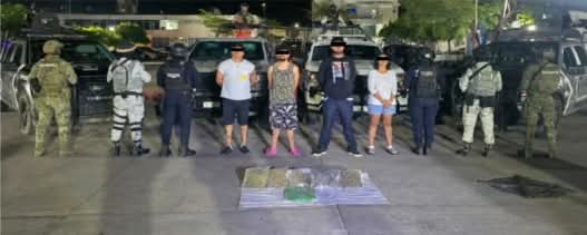 Los detenidos han sido identificados como Daniel Demetrio “N” alias “Olán”, María Teresa “N” alias “La Secre”, Rafael “N” alias “El Gordo” o “El Negro”, y Abraham “N” alias “Puyol”. Durante la intervención, las autoridades aseguraron varias bolsas y paquetes que contenían marihuana, así como dos mochilas en las que presuntamente transportaban la droga.