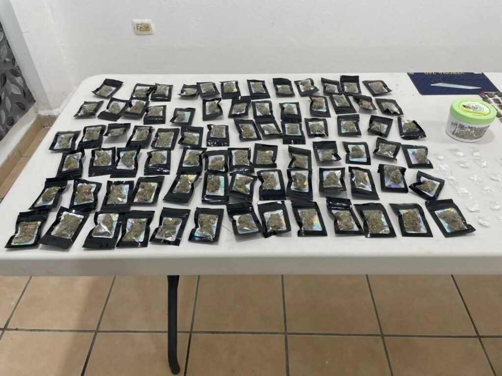 Durante la inspección, los agentes también le aseguraron 165 dosis de marihuana, 152 de cristal y varios teléfonos celulares, por lo que el sujeto fue puesto a disposición de la autoridad competente conforme a los protocolos establecidos.