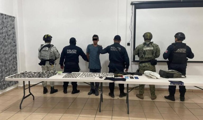 Durante la inspección, los agentes también le aseguraron 165 dosis de marihuana, 152 de cristal y varios teléfonos celulares, por lo que el sujeto fue puesto a disposición de la autoridad competente conforme a los protocolos establecidos.