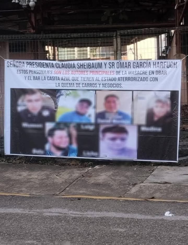 Al menos dos lonas aparecieron este domingo 12 de enero en Villahermosa en la que grupos delincuenciales se hacen acusaciones.