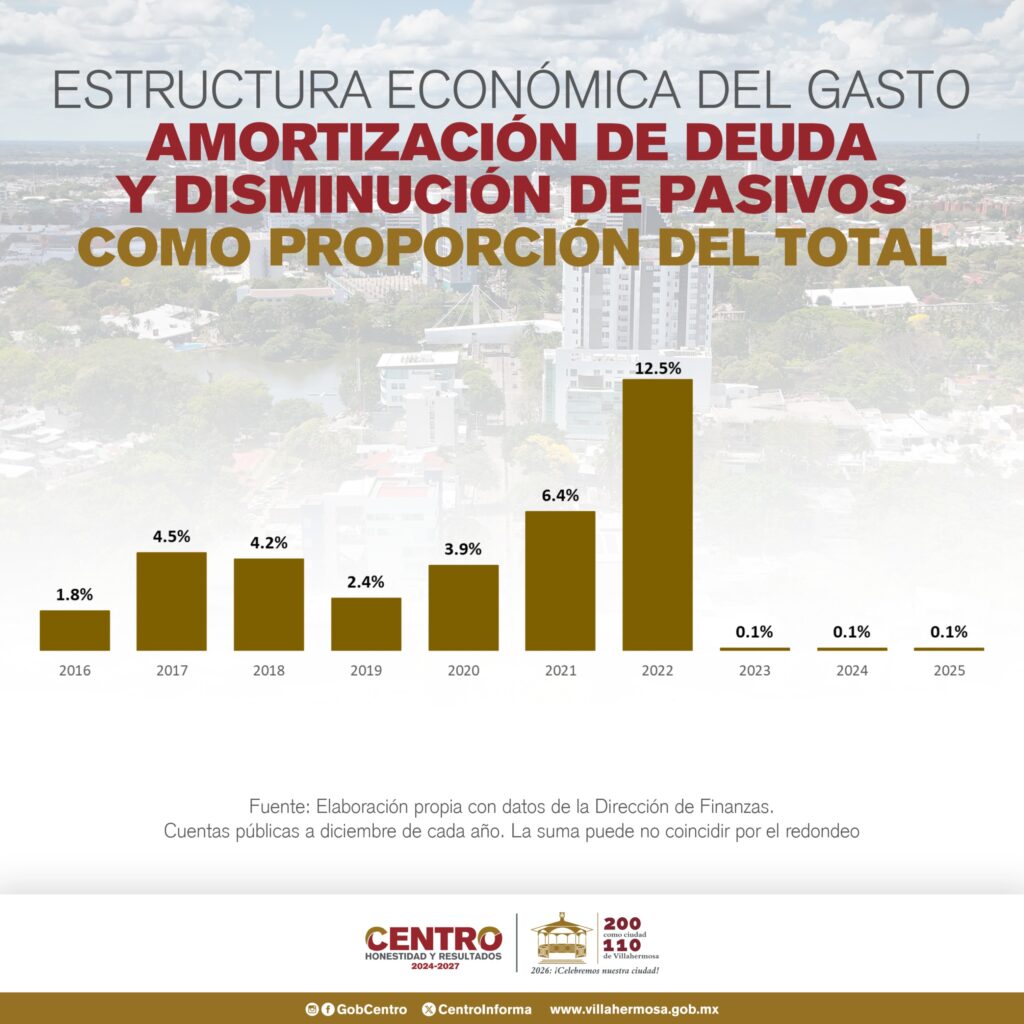 El hecho de que en casi un lustro el municipio de Centro rompiera con la tendencia a utilizar recurrentemente créditos de corto plazo para sostener su presupuesto, ha sido considerado positivamente por Fitch.