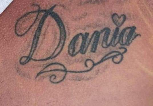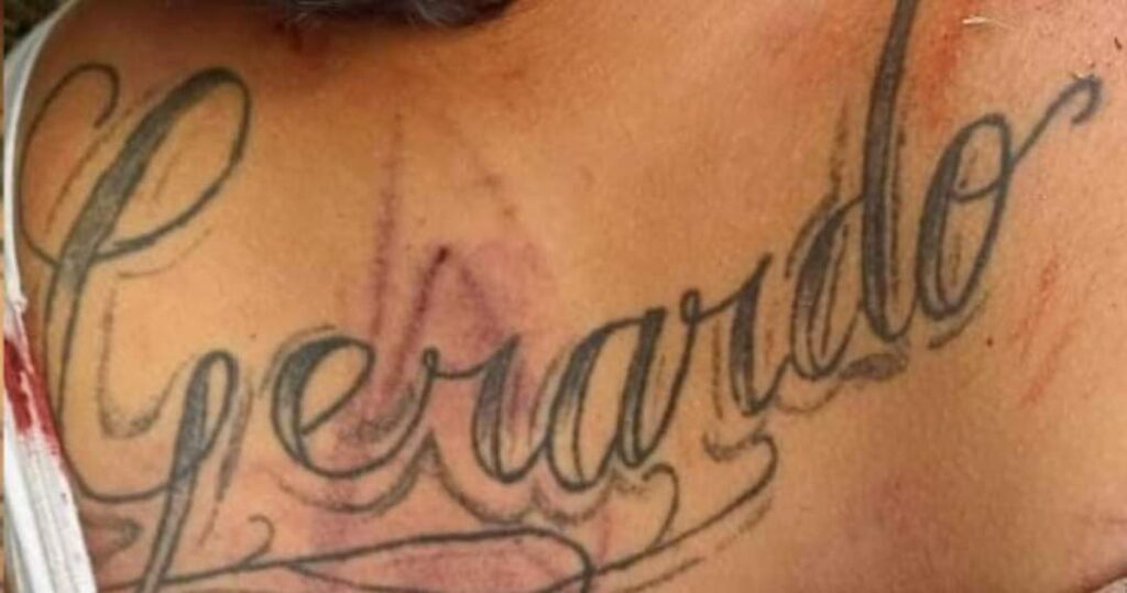 El sujeto tiene dos tatuajes uno con el nombre de “Dania” y otro en la espalda con el nombre de “Gerardo”
