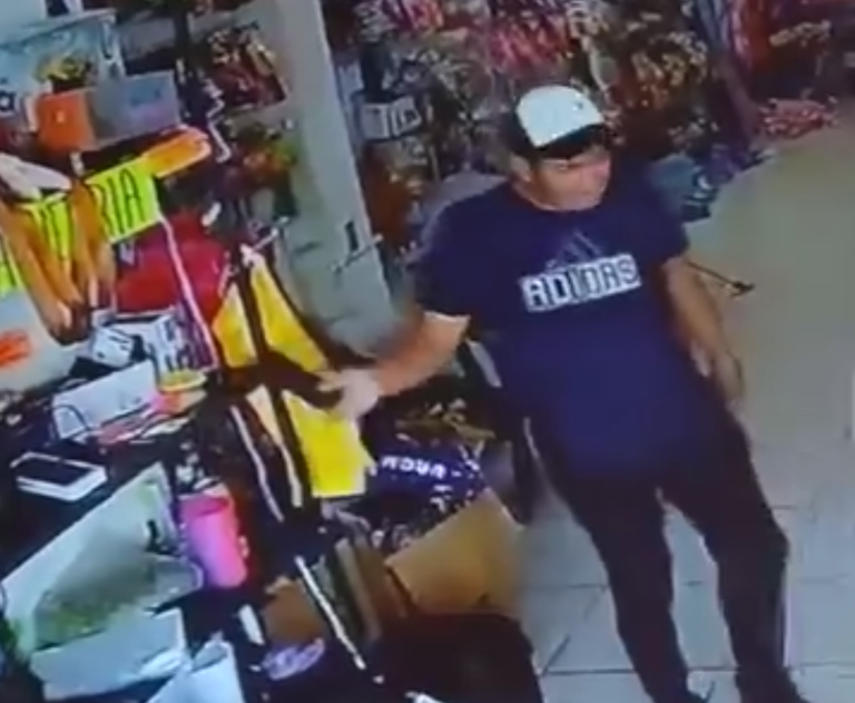 En videos que ya circulan en las redes, se observa como este individuo hace algunas preguntas a la vendedora y al darle la espalda aprovecha a llevarse el móvil y guardarlo entre sus ropas.