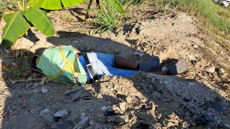 Envuelto entre una cartulina y con dos disparos en la cabeza fue hallado la mañana de este jueves un masculino en la comunidad Plátano y Cacao 2da sección sector Camellón.