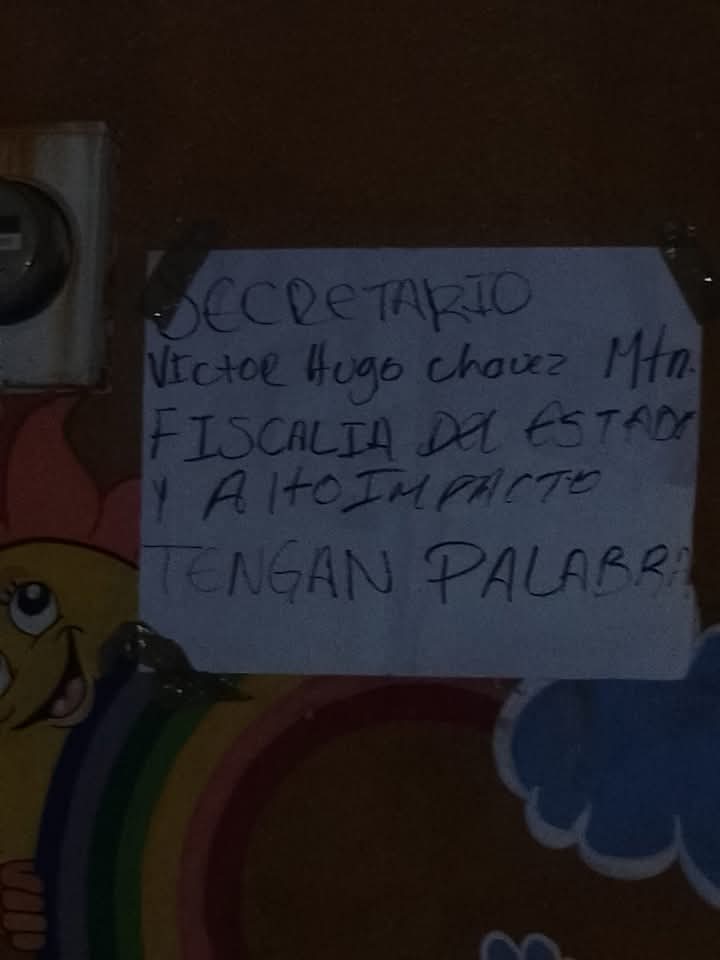 En escuelas de la colonia Gaviotas se logró captar cartulinas contra la Fiscalía del Estado y contra el titular de la SSPC.