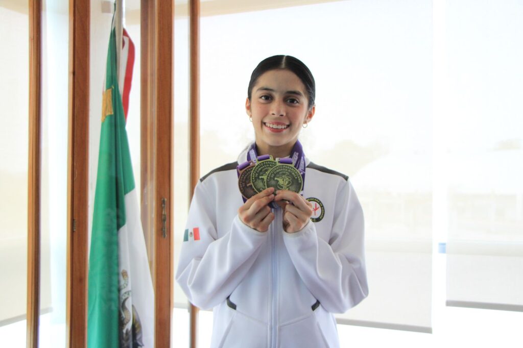 Con emoción, Fernanda enseñó sus preseas y expresó su agradecimiento a todas y todos los involucrados en el impulso a su talento y por la confianza que han tenido en ella para ser parte del conjunto nacional. Como parte de este respaldo, ella forma parte del programa de becas del Gobierno de Tabasco, destinado a impulsar el talento deportivo en el estado.